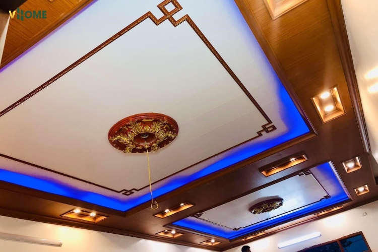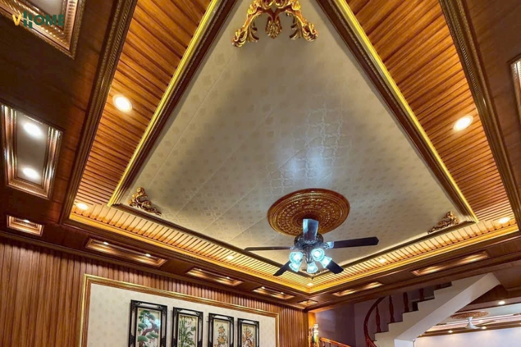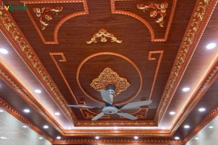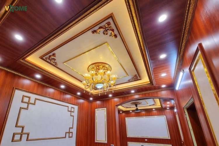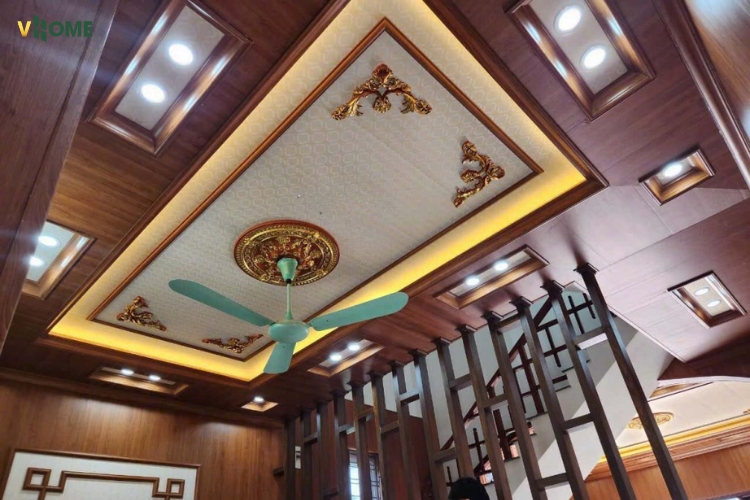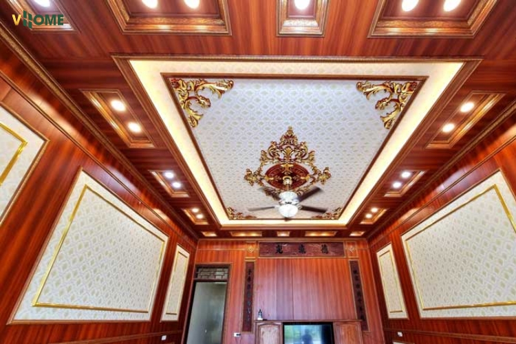 - Thẩm mỹ đa dạng: Có hoa văn cổ điển/tân cổ điển/dát vàng; màu trắng trơn, vân gỗ, vân đá, có thể sơn màu theo trần; dễ phối cùng phào chỉ nhựa, tấm ốp nano, lam sóng, PVC vân đá, tấm than tre.