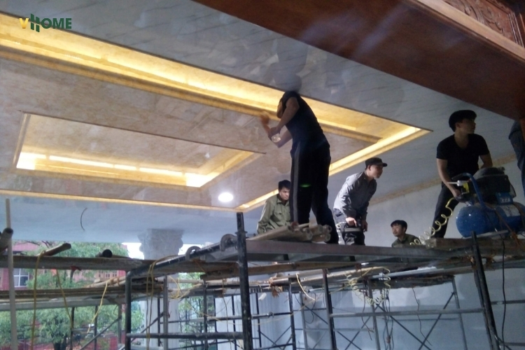 Chi phí làm trần nhựa giả đá phụ thuộc vào tiền mua vật liệu và chi phí nhân công. Các tấm làm trần nhựa giả đá Vhome sẽ sản xuất ngay khi đơn hàng được đặt và cắt theo kích thước yêu cầu.  Vhome cũng sẽ hỗ trợ tìm xe để vận chuyển tận nơi cho khách hàng. Tùy khu vực, Vhome có đội thợ quen sẽ giới thiệu nếu khách hàng có nhu cầu làm trọn gói. Liên hệ qua zalo hoặc để số điện thoại bên dưới để được tư vấn chi tiết.